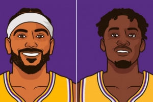 文森特和芬尼-史密斯同时替补进6+三分 湖人队史首对队友